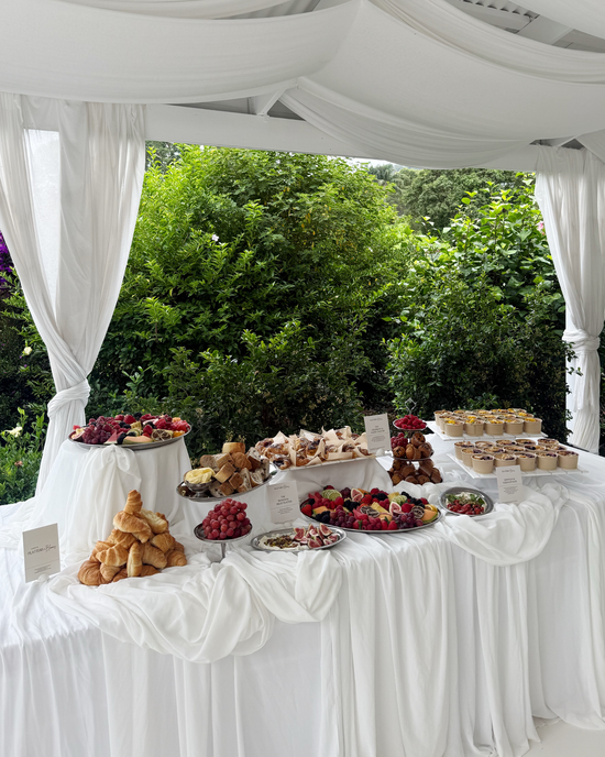We’ll collaborate with you to design a bespoke grazing table, complete with styling props, florals, and custom touches to perfectly match your event's theme. All you’ll need to provide is a suitable table for display—we recommend placing it out of direct sunlight and away from pests for the best experience.